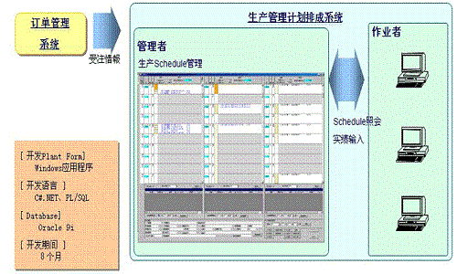 ◆生產(chǎn)計(jì)劃排成方案根據(jù)訂單自動(dòng)讀取訂單余額、進(jìn)行BOM展開進(jìn)行計(jì)劃排成(進(jìn)行Gantt chart化)。作業(yè)指示?實(shí)績收集系統(tǒng)連接。在現(xiàn)場參照Schedule、可以進(jìn)行進(jìn)度管理。實(shí)時(shí)反映實(shí)績的信息。簡單的拖&拉就能進(jìn)行計(jì)劃Schedule變更、能夠明確延誤與否判斷的進(jìn)度管理